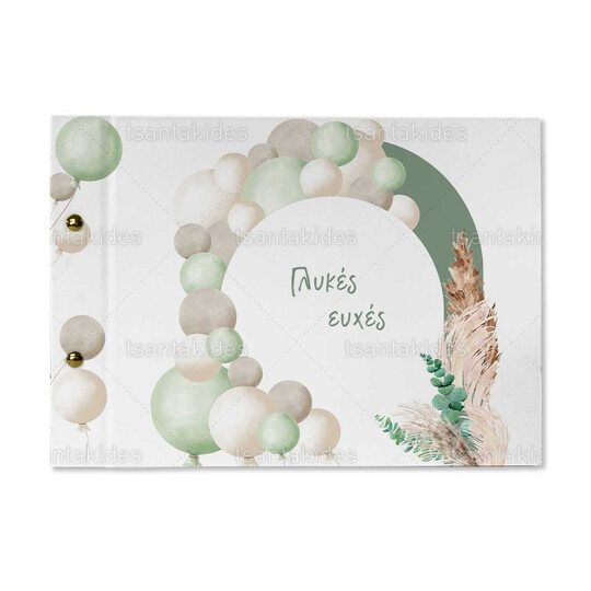 Βιβλίο ευχών εκτυπωμένο με θέμα Βοhο Arch Balloons
