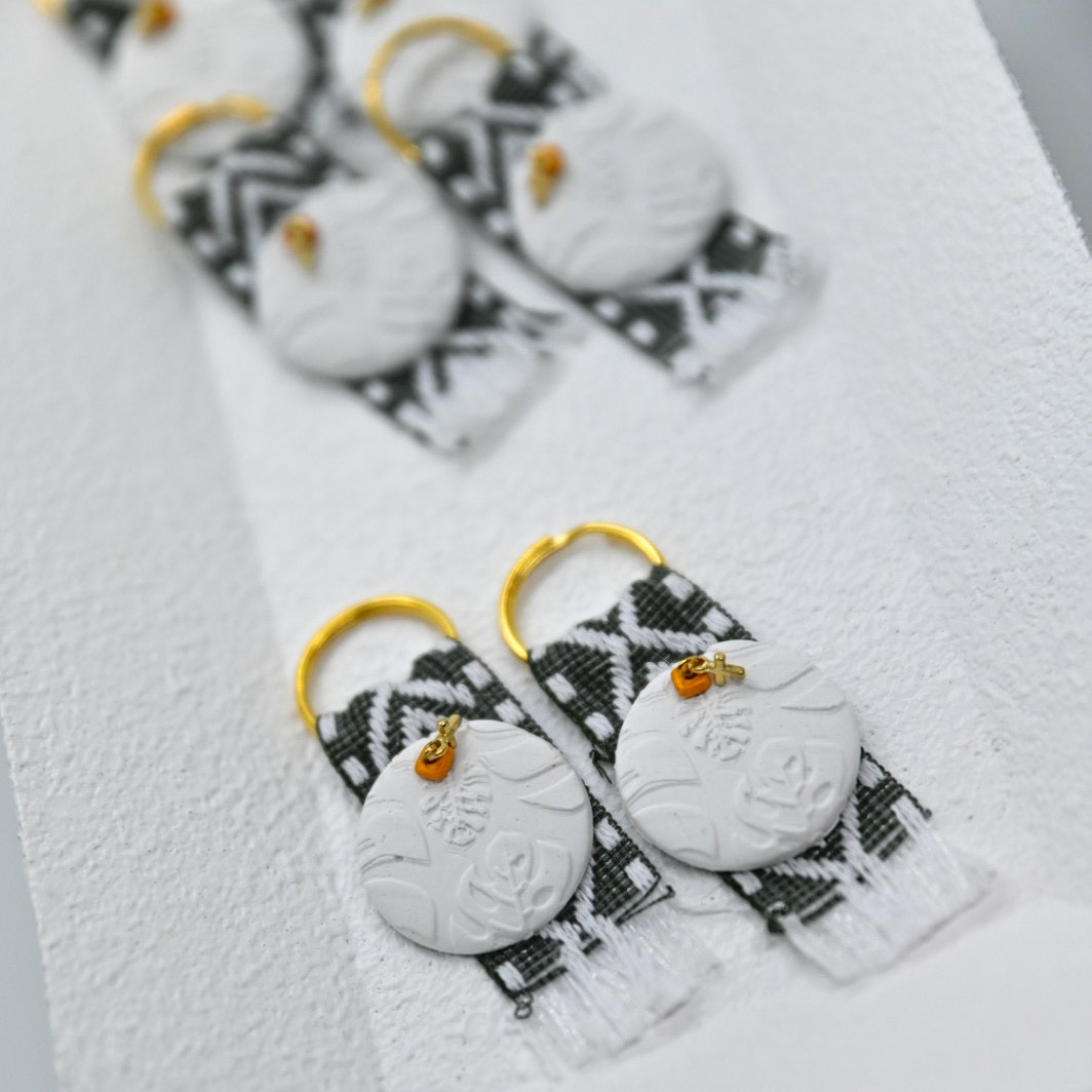 Μαρτυρικό βάπτισης για αγόρι μπρελόκ με αρωματικό στρογγυλό μοτίβο μονστέρα με επίχρυσο σταυρουδάκι.
