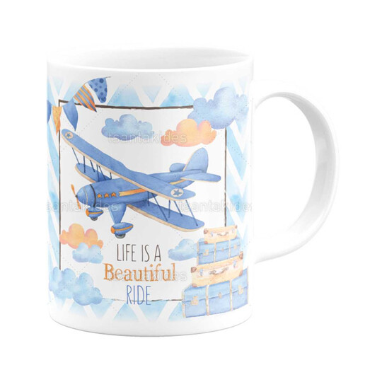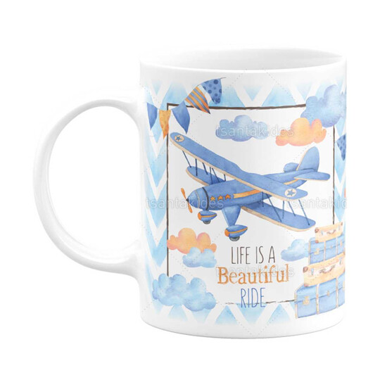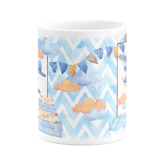 Κεραμική κούπα εκτυπωμένη με θέμα travel και αεροπλανάκι