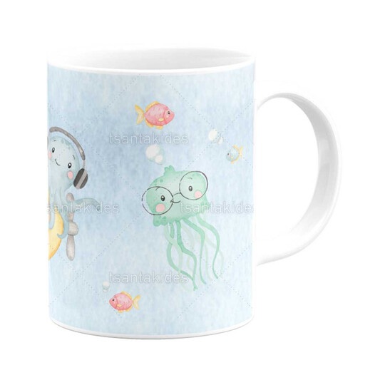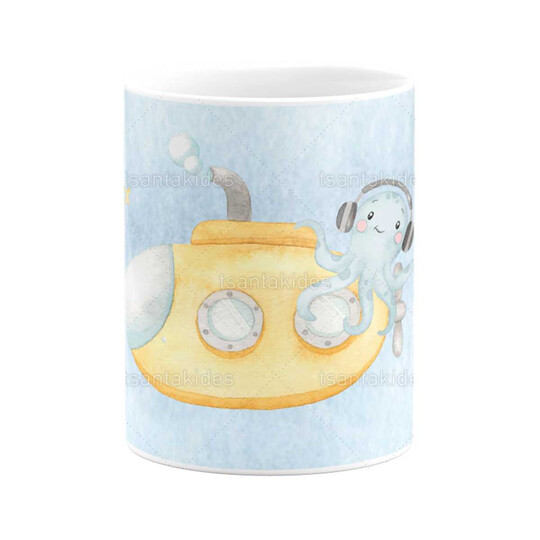 Κεραμική κούπα εκτυπωμένη με θέμα το υποβρύχιο και το μικρό χταπόδι