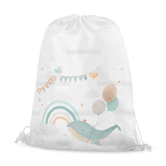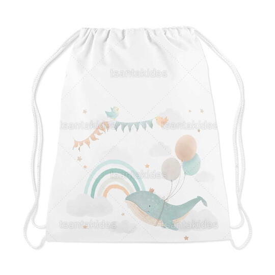 Υφασμάτινο σακιδιο πλατης εκτυπωμένο με θέμα Flying Whale with Balloons