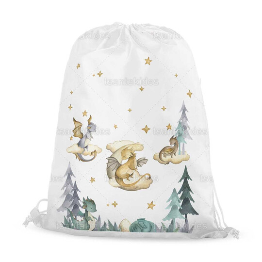 Υφασμάτινο σακιδιο πλατης εκτυπωμένο με θέμα Cute Dragons