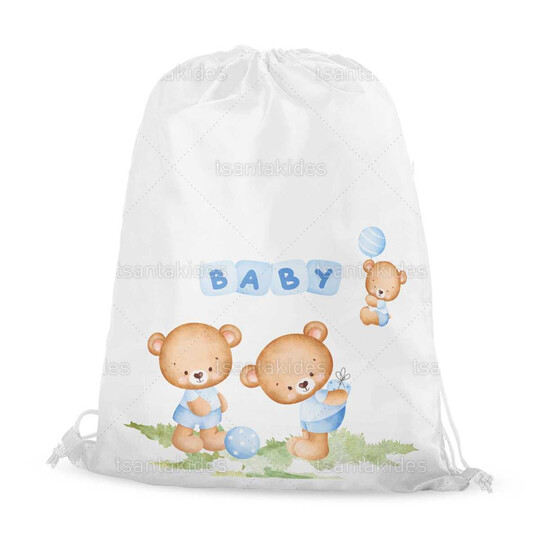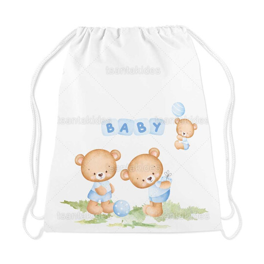 Υφασμάτινο σακιδιο πλατης εκτυπωμένο με θέμα Teddy Bear with Baby Elements