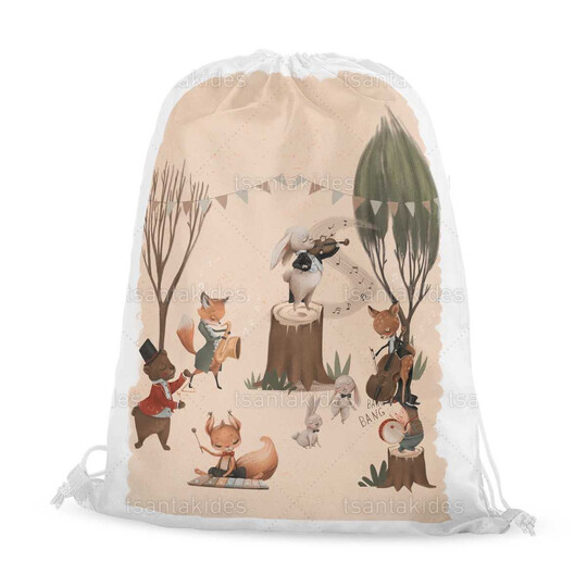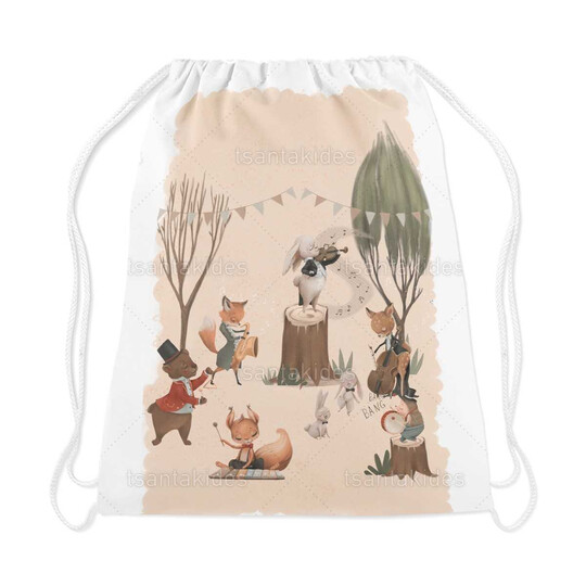 Υφασμάτινο σακιδιο πλατης εκτυπωμένο με θέμα Woodland Musicians