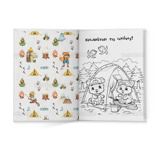 Δίπτυχο δημιουργικής απασχόλησης με ένθετο τετρασέλιδο εκτυπωμένο με θέμα Camping Animals