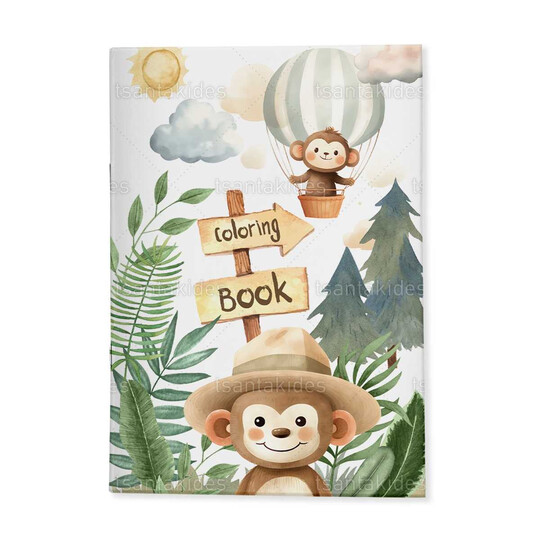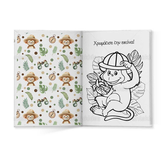 Δίπτυχο δημιουργικής απασχόλησης με ένθετο τετρασέλιδο εκτυπωμένο με θέμα Jungle monkey adventure