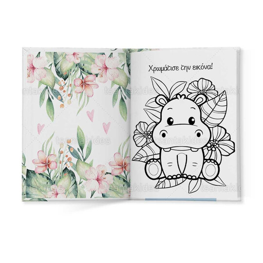 Δίπτυχο δημιουργικής απασχόλησης με ένθετο τετρασέλιδο εκτυπωμένο με θέμα Cute baby hippo