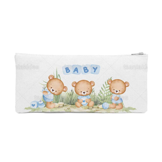 Υφασμάτινη κασετίνα εκτυπωμένη με θέμα Teddy Bear with Baby Elements