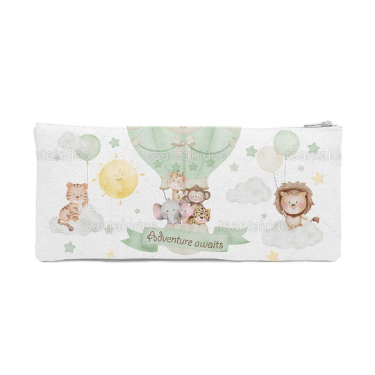 Υφασμάτινη κασετίνα εκτυπωμένη με θέμα Jungle animals on a hot air balloon