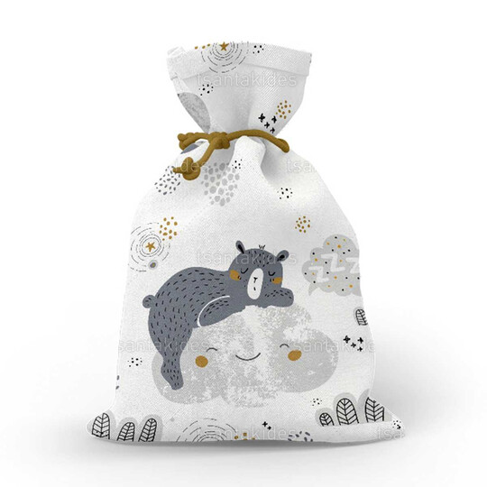 Υφασμάτινο πουγκί εκτυπωμένο με θέμα τον μικρό αρκούδο στο συννεφάκι