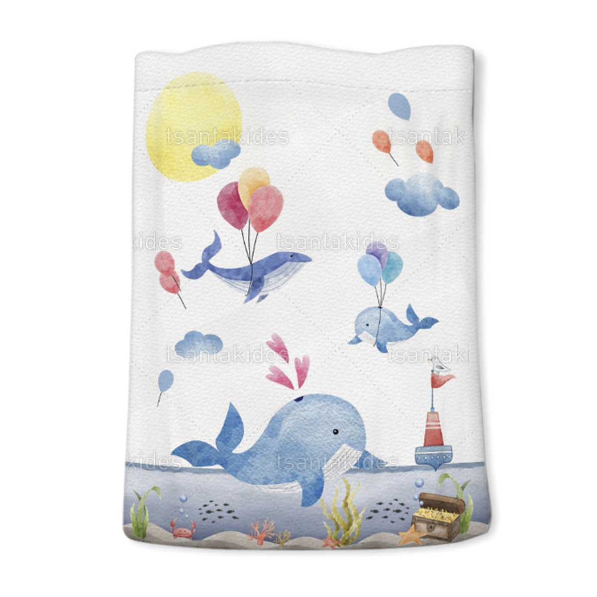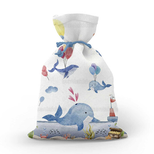 Υφασμάτινο πουγκί εκτυπωμένο με θέμα  τη θάλασσα και το μικρό φαλαινάκι