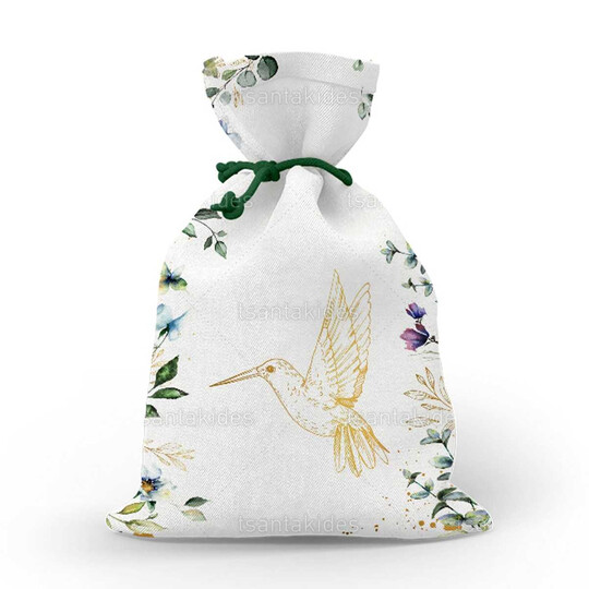 Υφασμάτινο πουγκί εκτυπωμένο με θέμα Flower Colibri