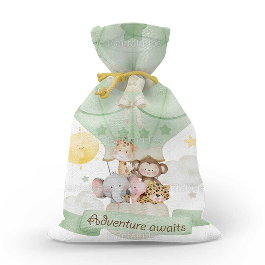 \n\nΥφασμάτινο πουγκί εκτυπωμένο με θέμα Jungle animals on a hot air balloon \n