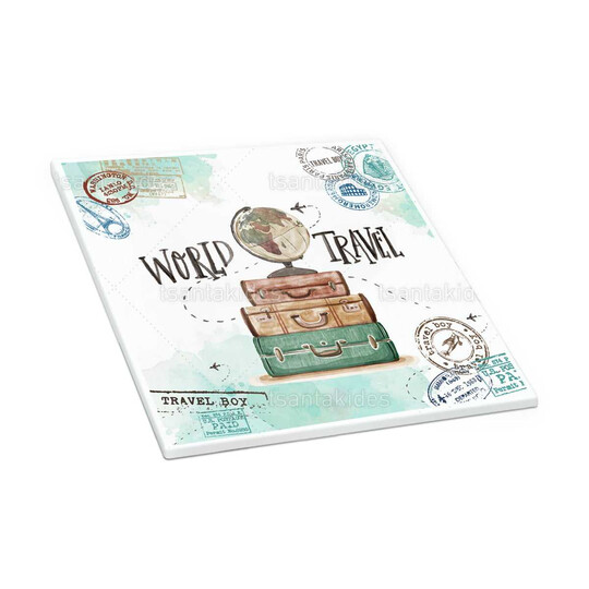 Κεραμικό σουβέρ βάπτισης εκτυπωμένο με θέμα travel boy