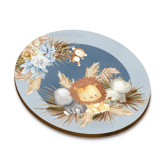 Ξύλινο σουβέρ βάπτισης εκτυπωμένο με θέμα Βοhο Jungle