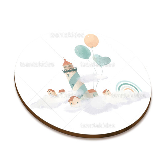 Ξύλινο σουβέρ βάπτισης εκτυπωμένο με θέμα Flying Whale with Balloons