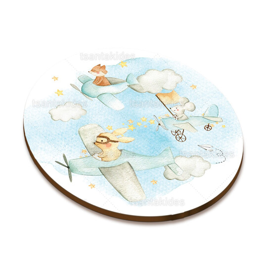Ξύλινο σουβέρ βάπτισης εκτυπωμένο με θέμα Cute Animals Flying High