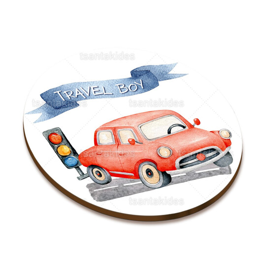Ξύλινο σουβέρ βάπτισης εκτυπωμένο με θέμα Travel & Transport