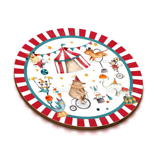 Ξύλινο σουβέρ βάπτισης εκτυπωμένο με θέμα Circus