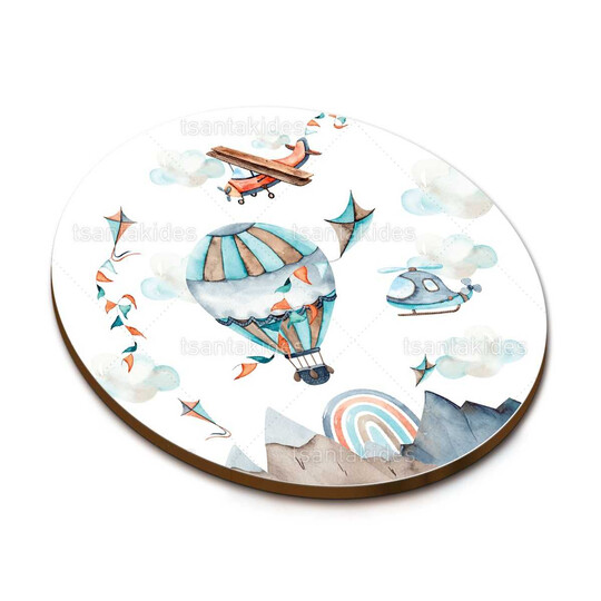 Ξύλινο σουβέρ βάπτισης εκτυπωμένο με θέμα Travel Boy
