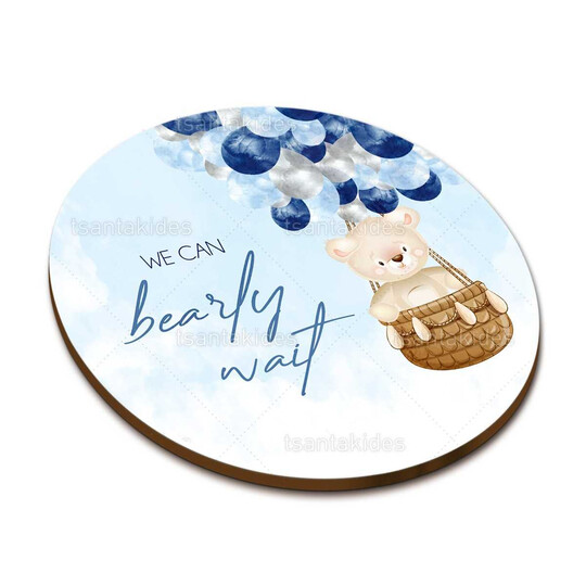 Ξύλινο σουβέρ βάπτισης εκτυπωμένο με θέμα Bear Balloons