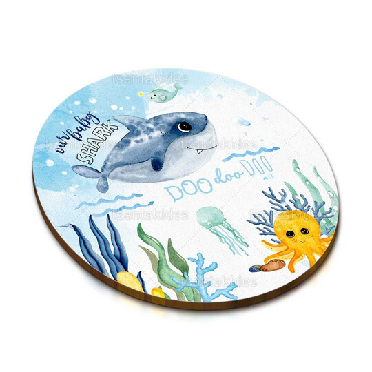 Ξύλινο σουβέρ βάπτισης εκτυπωμένο με θέμα Baby Shark