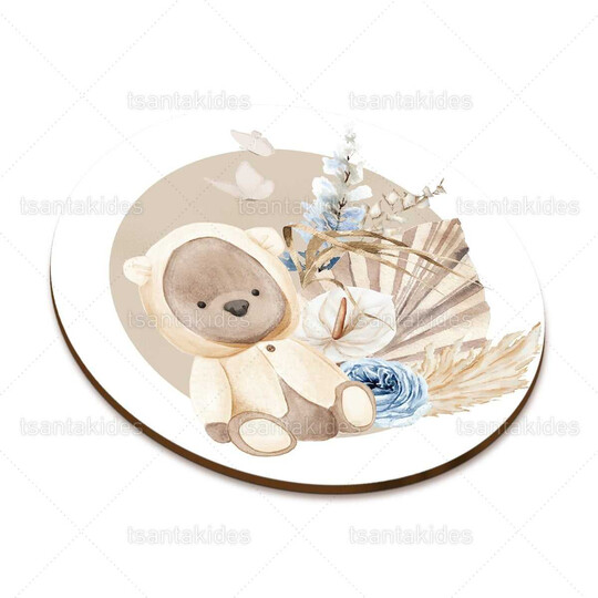 Ξύλινο διακοσμητικό μπομπονιέρας εκτυπωμένο με θέμα Boho Teddy Bear