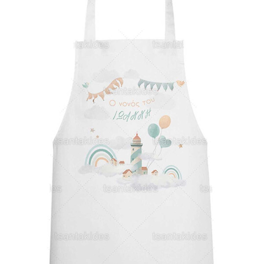 Υφασμάτινη ποδιά νονού/νονάς εκτυπωμένη με θέμα Flying Whale with Balloons