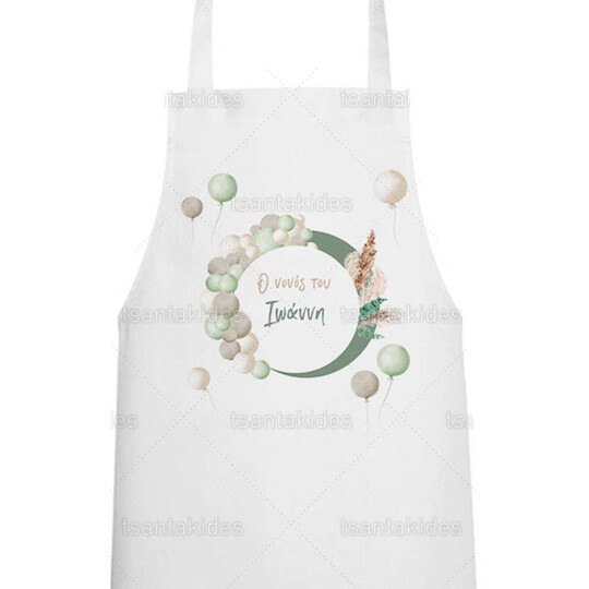 Υφασμάτινη ποδιά νονού/νονάς εκτυπωμένη με θέμα Βοhο Arch Balloons