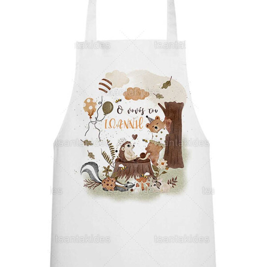 Υφασμάτινη ποδιά νονού/νονάς εκτυπωμένη με θέμα Ζωάκια του δάσους
