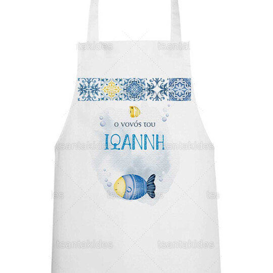Υφασμάτινη ποδιά νονού/νονάς εκτυπωμένη με θέμα Funny fish