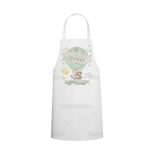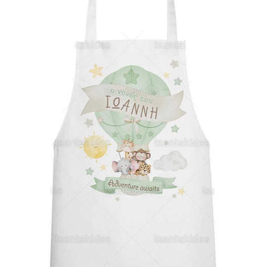 Υφασμάτινη ποδιά νονού/νονάς εκτυπωμένη με θέμα Jungle animals on a hot air balloon