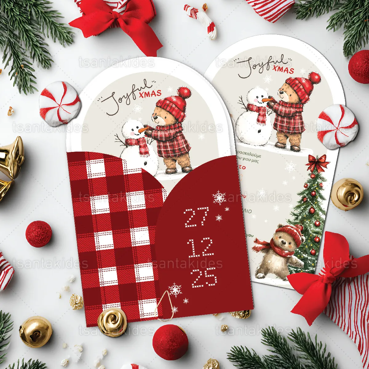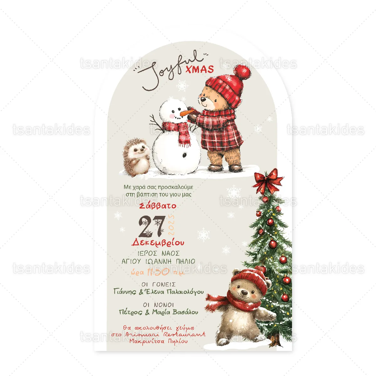 Προσκλητήριο βάπτισης εκτυπωμένο με θέμα Christmas Bear.