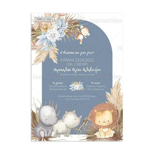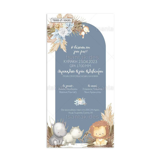 Προσκλητήριο βάπτισης παπυράκι εκτυπωμένο με θέμα Βοhο Jungle