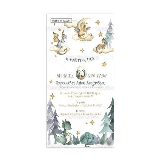 Προσκλητήριο βάπτισης παπυράκι εκτυπωμένο με θέμα Cute Dragons