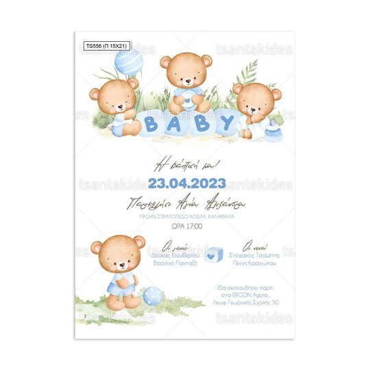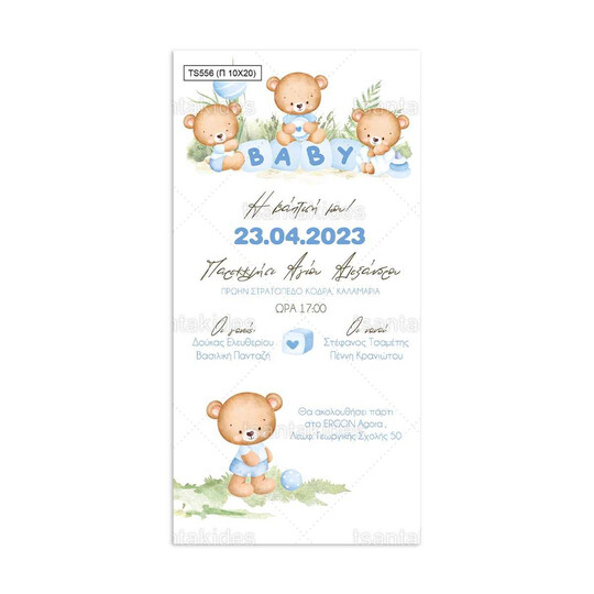 Προσκλητήριο βάπτισης παπυράκι εκτυπωμένο με θέμα Teddy Bear with Baby Elements
