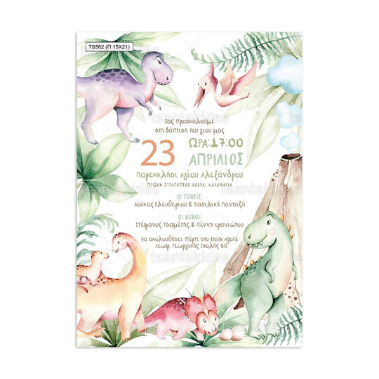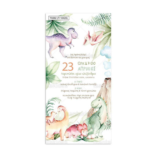 Προσκλητήριο βάπτισης παπυράκι εκτυπωμένο με θέμα Dinosaurs