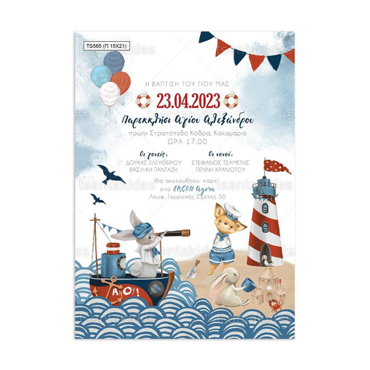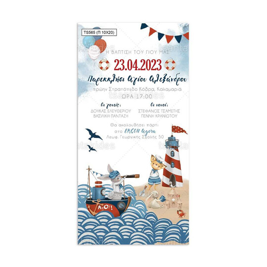 Προσκλητήριο βάπτισης παπυράκι εκτυπωμένο με θέμα Sea Adventures