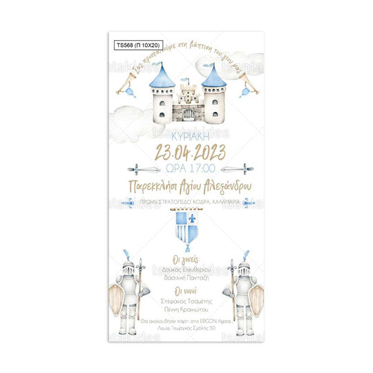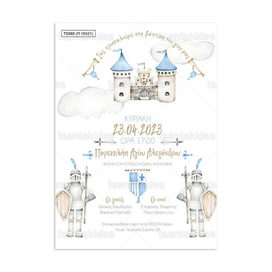 Προσκλητήριο βάπτισης παπυράκι εκτυπωμένο με θέμα Knight of a Castle