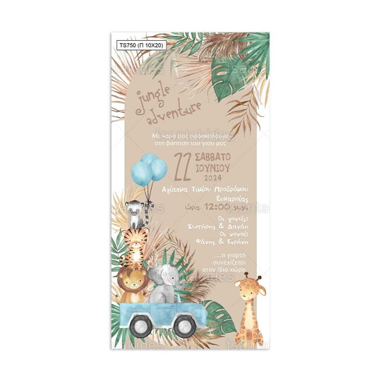 Προσκλητήριο βάπτισης παπυράκι εκτυπωμένο με θέμα Boho safari jungle