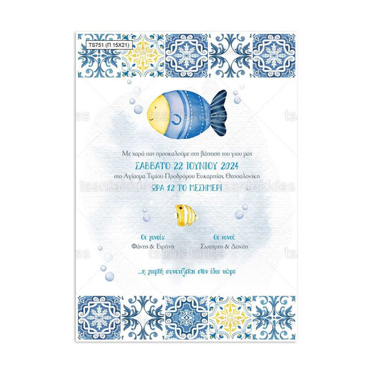 Προσκλητήριο βάπτισης παπυράκι εκτυπωμένο με θέμα Funny fish