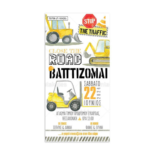 Προσκλητήριο βάπτισης παπυράκι εκτυπωμένο με θέμα Baby under construction