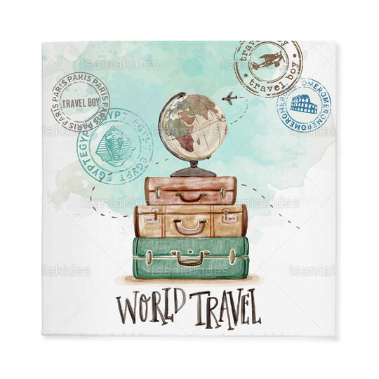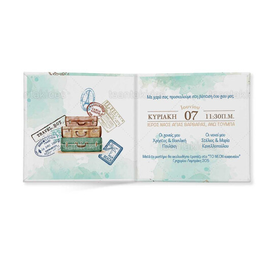 Προσκλητήριο σκληρό καπάκι, παραμυθάκι μικρό, εκτυπωμένο με θέμα travel boy