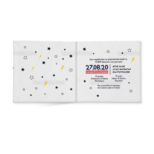 Προσκλητήριο σκληρό καπάκι, παραμυθάκι μικρό, εκτυπωμένο με θέμα superheroes