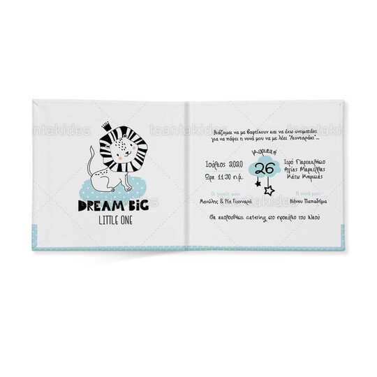 Προσκλητήριο σκληρό καπάκι, παραμυθάκι μικρό, εκτυπωμένο με θέμα το λιονταράκι
