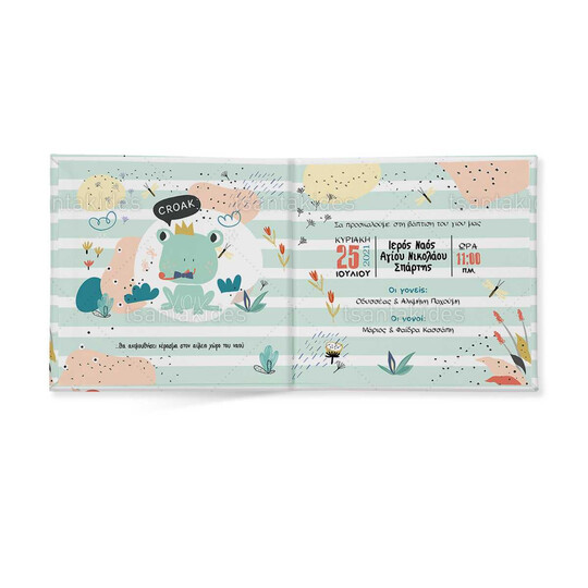 Προσκλητήριο σκληρό καπάκι, παραμυθάκι μικρό, εκτυπωμένο με θέμα το βατραχάκι