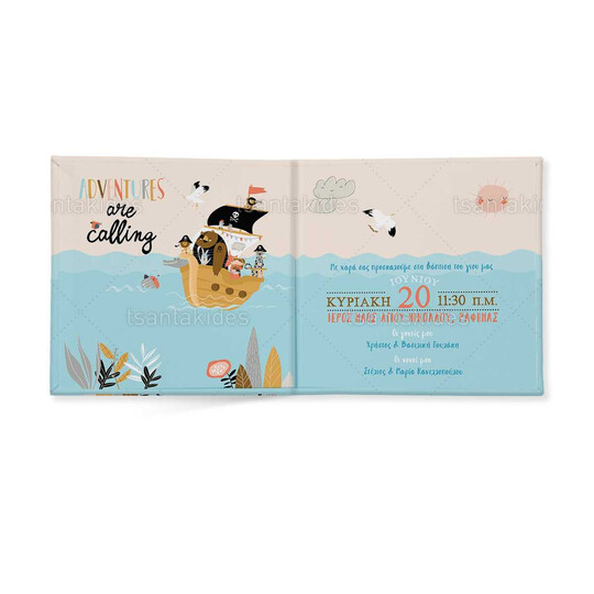 Προσκλητήριο σκληρό καπάκι, παραμυθάκι μικρό, εκτυπωμένο με θέμα sailing adventure