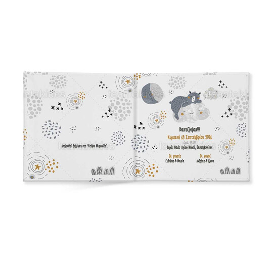 Προσκλητήριο σκληρό καπάκι, παραμυθάκι μικρό, εκτυπωμένο με θέμα τον μικρό αρκούδο στο συννεφάκι