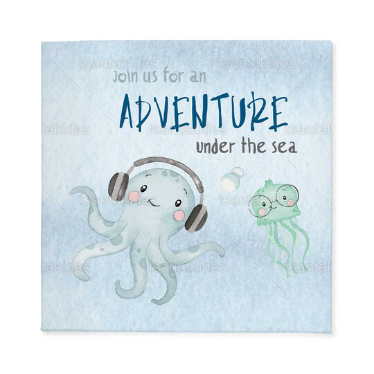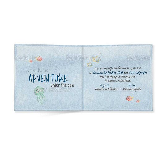 Προσκλητήριο σκληρό καπάκι, παραμυθάκι μικρό, εκτυπωμένο με θέμα το υποβρύχιο και το μικρό χταπόδι