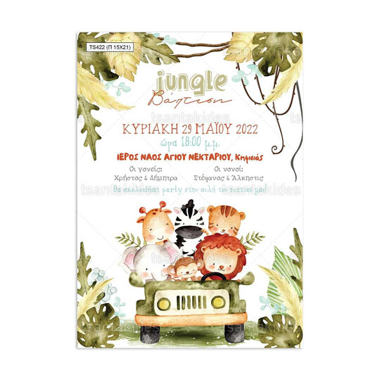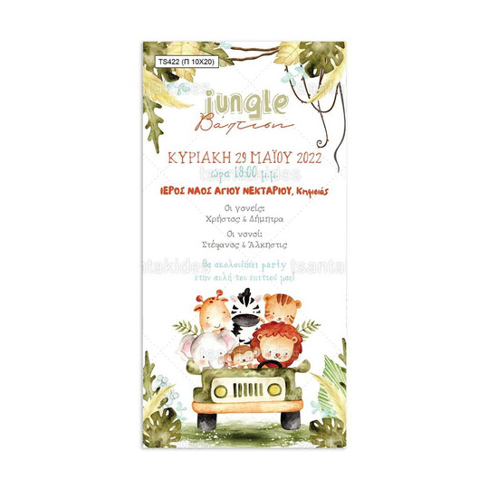 Προσκλητήριο βάπτισης παπυράκι εκτυπωμένο με θέμα Safari Animals